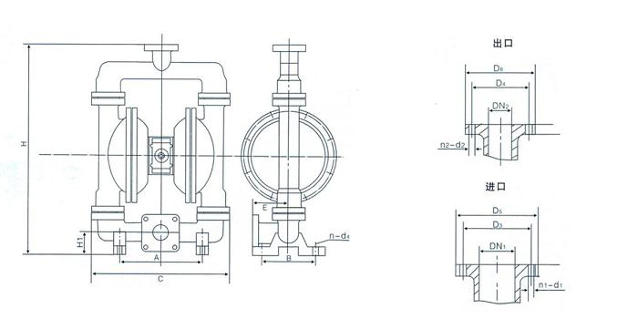 QBY氣動(dòng)隔膜泵安裝尺寸: