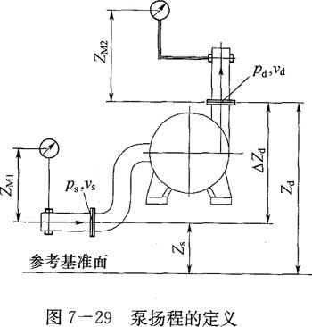 H=(Zd+pd/ρg +vd2/2g)-(Zs+ps/ρg + vsd2/2g)=H2-H1式中  H2,H1—泵出口、進(jìn)口總水頭。