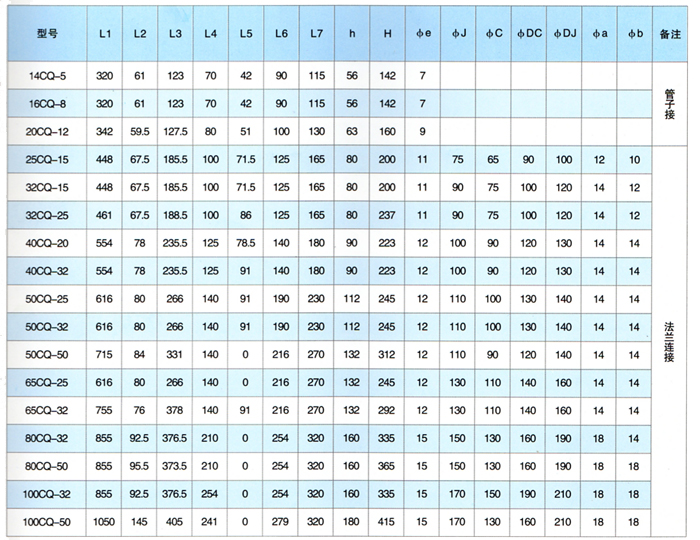 注:表中16CQ-8---100CQ-50都可配防爆電機(jī) |